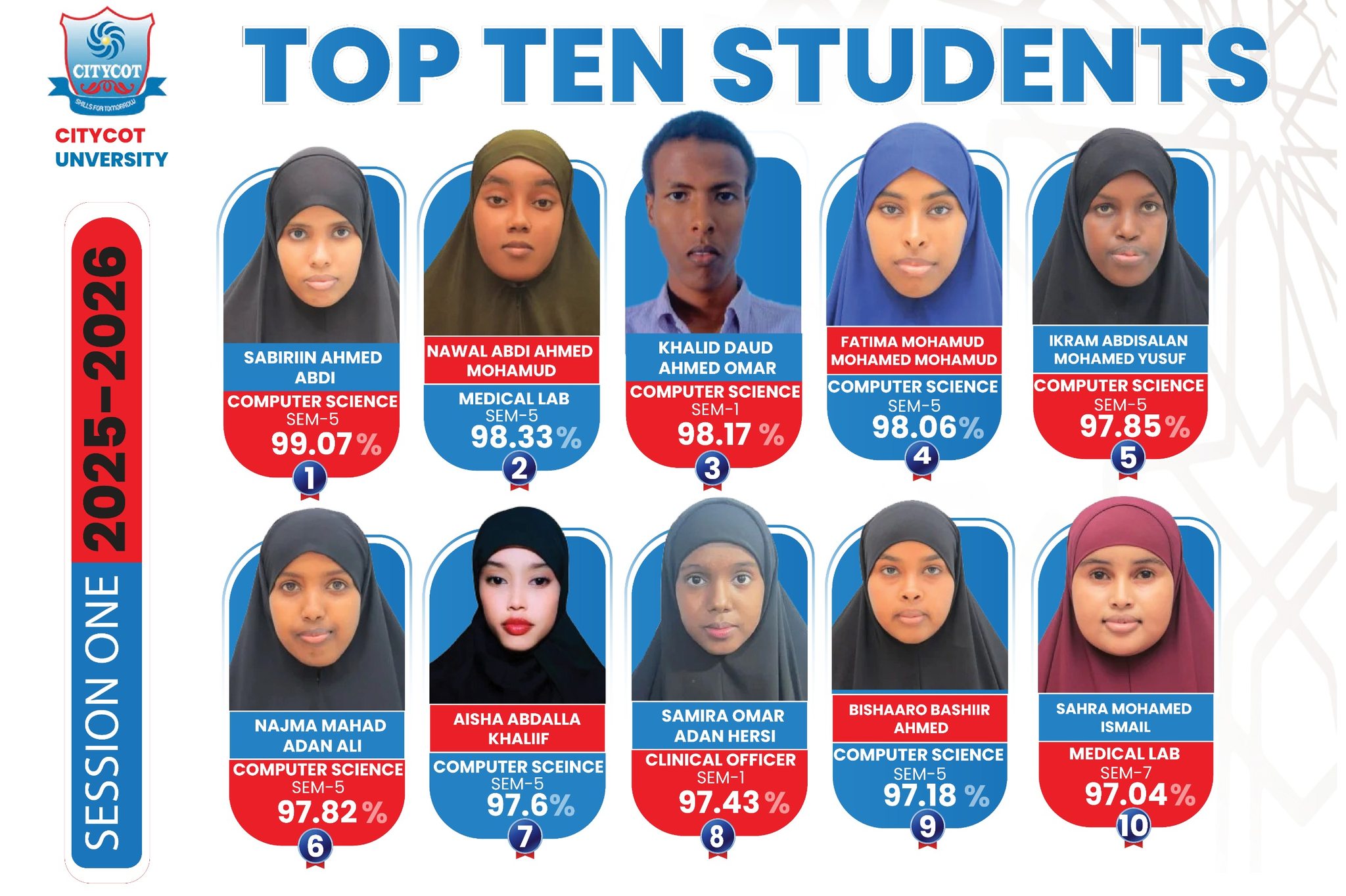 On April 2, 2026, CITYCOT University organized a well-planned ceremony to recognize and reward the top-performing students who achieved the highest ranks in the first semester examinationse 2025/2026